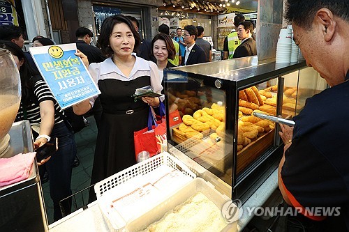 민생회복 소비쿠폰 이용해 꽈배기 구매하는 김혜경 여사 |