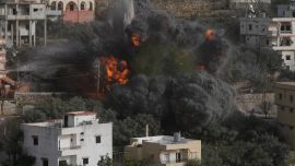 이스라엘 공습 피해 현장에 모인 레바논 주민들