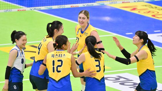 여자프로배구 현대건설이 안방에서 IBK기업은행을 꺾고 승전고를 울렸다. 친정팀을 처음 만난 '이적생' 김희진을 비롯한 주축 선수들의 활약이 빛났다. 강성형 감독이 이끄는 현대건설은 4일 경기도 수원체육관에서 열린 진에어 2025-2026 V리그 여자부 1라운드 경기에서 IBK기업은행을 세트 스코어 3-0(25-20 25-20 25-22)으로 이겼다. 현대건설은 이날 승리로 시즌 3승1패, 승점9를 기록하면서 단숨에 4위에서 단독 선두로 뛰어올랐다. 페퍼저축은행(3승1패, 승점8)과 한국도로공사(3승1패, 승점8)를 제치고 순위표 가장 높은 곳을 차지했다. 현대건설은 주포 카리가 팀 내 최다 18득점으로 에이스 역할을 톡톡히 해냈다. 양효진 14득점, 자스티스 11득점, 김희진 6득점, 정지윤 9득점 등 주축 선수들이 나란히 활약하면서 낙승을 손에 넣었다. 현대건설 김희진은 지난 5월 IBK기업은행을 떠나 현대건설에 새 둥지를 튼 뒤 처음으로 만난 친정팀을 상대로 녹슬지 않은 기량을