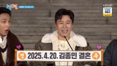 (엑스포츠뉴스 원민순 기자) 김종민이 결혼을 공식적으로 발표했다. 12일 방송된 KBS 2TV '1박 2일 시즌4'에서는 김종- 2025.01.13 07:20