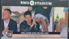 손흥민, LAFC 홈구장 찾았다! 대형 스크린에 등장→"미소 지으며 손 흔들어"
