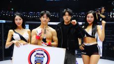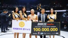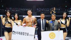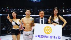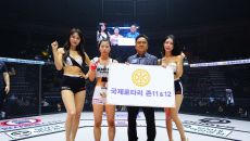 국제로타리 존11&12 김명준 총재, 승리한 한상권에게 트로피 시상[로드FC]