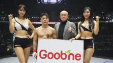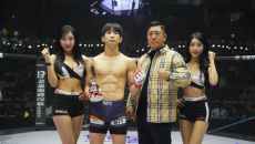 GN푸드 중국지사 김영철 대표, 승리한 조준건에게 트로피 시상[로드FC]
