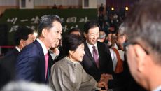 박정희 전 대통령 탄생 108돌 기념 문화행사가 14일 경북 구미시 복합스포츠센터에서 열렸다. 행사에는 박근혜 전 대통령과 이- 2025.11.14 16:07