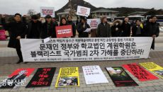 학생·교수·시민단체가 박근혜 정권의 블랙리스트 실행을 주도했다며 송수근 계원예술대학교 총장의 퇴진을 요구했다. ‘블랙리스트 책- 2020.01.28 16:06