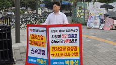 박용선 경북도의회 의원은 최근 용산 대통령실 앞에서 산업용 전기요금 반값 인하를 강력히 촉구하는 1인 시위에 나섰다고 5일 밝- 2025.08.05 14:54