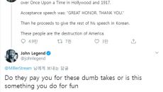 美방송인 존 밀러, '기생충' 수상 조롱→존 레전드 "멍청한 글" 분노 [엑's 할리우드]