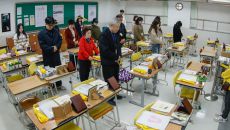 세월호 참사 11주기를 하루 앞둔 15일 경기 안산시 4·16민주시민교육원 내 단원고 4·16기억교실을 찾은 추모객들이 참사- 2025.04.15 19:21