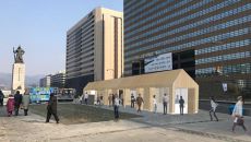 서울 광화문광장에 세월호 추모 천막 대신 들어설 세월호 기억·안전 전시공간은 79.98㎡(약 24평) 규모 목조 형태다. 서울- 2019.03.14 15:55