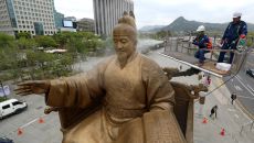 광화문 세종대왕·이순신장군 동상, 미세먼지 씻고 새단장