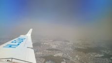 기상센터입니다. 오늘(12일)은 황사로 인해 종일 공기 질이 나빴습니다. 오늘 오후 서울 상공의 모습인데요, 기상항공기 나라호- 2023.04.12 21:27