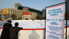 8일 서울 중구 서울광장 스케이트장에 ‘대기질에 따른 스케이트장 운영중지’ 안내문이 게시돼 있다. 초미세먼지와 황사가 뒤섞이면- 2023.01.08 19:06