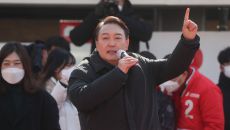 [머니투데이 성남(경기)=김지훈 기자] [the300]윤석열 국민의힘 대선 후보가 17일 이재명 더불어민주당 대선 후보의 '친- 2022.02.17 14:59