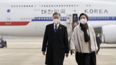 아랍에미리트(UAE), 사우디아라비아, 이집트 등 중동 3개국 순방을 마친 문재인 대통령이 22일 오전 성남 서울공항에 도착,- 2022.01.22 13:54