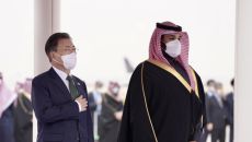 중동 순방 중인 문재인 대통령은 18일(현지시간) 사우디아라비아의 수도 리야드에 도착했다. 이번 사우디 방문은 우리 정상으로선- 2022.01.18 19:30