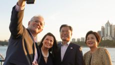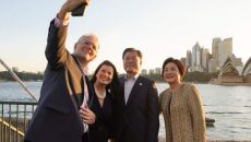 문재인 대통령 부부가 호주 스콧 모리슨 총리 부부와 시드니 오페라하우스 앞에서 ‘셀카’를 찍은 것을 두고 비난하는 야당에 대해- 2021.12.17 09:31