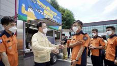 문 대통령 소방서 격려방문 “폭염·코로나로부터 국민 지키는 데 큰 역할”