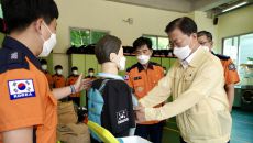 [아시아경제 이지은 기자] 문재인 대통령은 6일 경기도 용인소방서를 찾아 폭염 속 환자 응급이송에 여념이 없는 소방대원들을 격- 2021.08.06 13:36