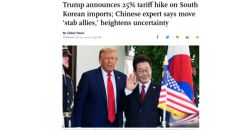 트럼프, 韓 관세 25% 인상에...中전문가 "동맹국 배신 행위"