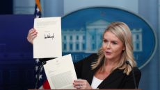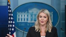 [서울=뉴스핌] 백악관 대변인 캐롤라인 리빗이 7일(현지시간) 미국 워싱턴 D.C. 백악관에서 열린 기자회견에서 도널드 트럼프- 2025.07.08 08:50