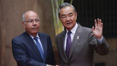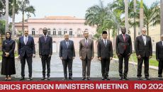 28일 브라질 리우데자네이루에서 열린 중국·러시아 주도의 신흥 경제국 연합체 브릭스(BRICS) 외교 장관 회의 참석자들이 기- 2025.04.30 01:46