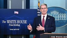 (워싱턴=연합뉴스) 강병철 특파원 = 하워드 러트닉 미국 상무부 장관은 29일(현지시간) 다른 나라와의 상호관세 협상 상황과- 2025.04.30 03:33