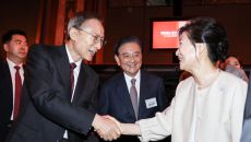 "멀리서 오셨네요" "반가워요"…MB∙박근혜, 12년 만에 악수