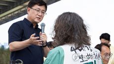 (서울=연합뉴스) 이재영 기자 = 김성환 환경부 장관이 24일 금강 세종보 철거를 주장하는 환경단체에 앞으로도 보 수문을 닫지- 2025.07.24 09:30