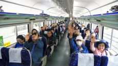 (광주=연합뉴스) 장덕종 기자 = 6·15남북공동성명 25주년을 기념 운행하는 '광주평화열차'가 13일 오전 355명의 탑승객- 2025.06.13 10:46