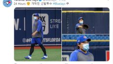 (서울=연합뉴스) 하남직 기자 = 토론토 블루제이스 구단은 24일(한국시간) 구단 트위터에 류현진(33)의 훈련 장면 사진을- 2020.07.24 10:56