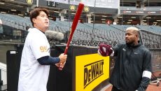 "류현진, 너 발 느리잖아!"…악동과 코리안 몬스터의 재회, 티격태격 속 선물 오갔다 [대전 현장]