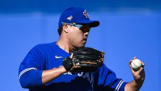 (서울=연합뉴스) 장현구 기자 = 류현진(33·토론토 블루제이스)의 동갑내기 팀 동료인 일본인 우완 투수 야마구치 순이 미국프- 2020.02.25 06:38
