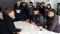 눈 내리는 서산캠프에 찾아온 반가운 손님...류현진 첫 방문