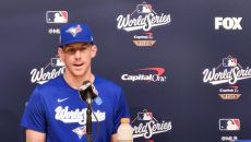 [OSEN=잠실, 이후광 기자] 한국시리즈 2차전을 마치고 류현진(한화 이글스)을 한국 최고의 투수라고 치켜세운 박동원. 그런- 2025.10.28 01:42