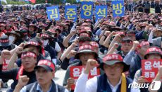 한국노총이 산별 노조 간부에 대한 강경 진압을 이유로 경제사회노동위원회 불참을 선언한 가운데 노동계가 김준영 한국노총 금속노련- 2023.06.08 20:57