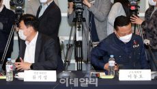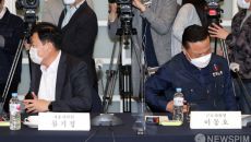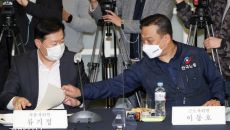 [서울=뉴스핌] 윤창빈 기자 = 최저임금위원회 근로자위원인 이동호 한국노총 사무총장(오른쪽)과 사용자위원인 한국경영자총협회 류- 2022.04.05 15:15