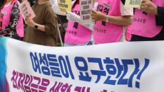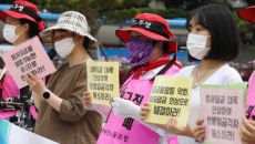 [서울=뉴스핌] 백인혁 기자 = 전국여성노동조합 관계자들이 2일 오전 서울 종로구 청와대 앞 분수대 광장에서 '여성들이 요구한- 2021.07.02 12:20