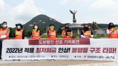 CBS노컷뉴스 황진환 기자 23일 오전 청와대 앞에서 ‘2022년 적용 최저임금 인상! 불평등 구조 타파’ 도보행진 선포 기자- 2021.06.23 13:32