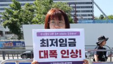 [서울=뉴스핌] 이호형 기자 = 전국서비스산업노동조합연맹 (서비스연맹)이 16일 오전 서울 용산구 전쟁기념관 앞에서 최저임금으- 2024.05.16 10:42