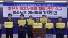 (창원=연합뉴스) 정종호 기자 = 전국금속노동조합 경남지부(이하 노조)는 1일 오후 도청 프레스센터에서 기자회견을 열고 "사업- 2025.10.01 15:35