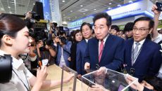 산업통상자원부가 주최하는 한국전자산업대전이 8일 서울 영동대로 코엑스에서 열려 이낙연 총리(가운데), 성윤모 산업통상자원부 장- 2019.10.08 15:34