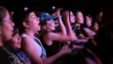 ▲ 케이팝 데몬 헌터스 싱어롱 이벤트에 참가하는 관객들의 모습 올해 k팝의 인기가 세계적으로 정점에 달했지만, 내부적으로는 위- 2025.12.26 15:53