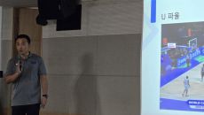 ▲ 16일 경기 규칙 설명회에서 이승무 KBL 심판이 발표하고 있다. 국내 남자프로농구에 '궂은일'을 인정하는 기록 지표가 신- 2025.09.16 17:11