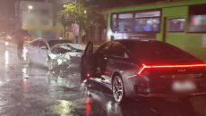 (부산=연합뉴스) 차근호 기자 = 지난 3일 오후 10시 9분께 부산 북구 덕천동 한 도로에서 K8 승용차가 중앙선을 넘어 역- 2025.10.04 11:04