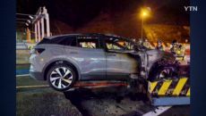 음주운전 20대, 톨게이트 연석 충돌로 전기차 화재
