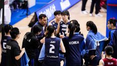 ▲ 모랄레스 전 감독(중앙)의 작전 지시를 듣는 여자배구 대표팀 선수들 내년 일본 아이치·나고야 아시안게임에서 한국 여자배구- 2025.12.25 07:47