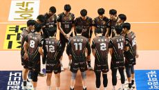 [스포티비뉴스=장충, 김민경 기자] OK금융그룹이 전 동료 최홍석을 기리며 연승 행진을 이어 갔다. 선수들은 경기에 앞서 코트- 2024.01.10 21:09
