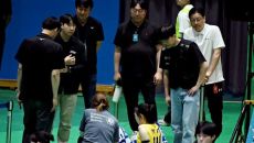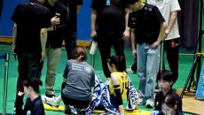 ▲ 24일 현대건설 양효진이 전남 여수 진남체육관에서 열린 대회 중 무릎을 다쳐 상태를 지켜보고 있다. 여자 프로배구 정규시즌- 2025.09.24 13:31