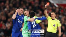 '황당' 프리미어리그 경기 도중 동료 뺨 때려 퇴장...하지만 '수적 우세' 맨유는 패배, 에버튼이 1-0 승리 챙겨