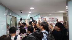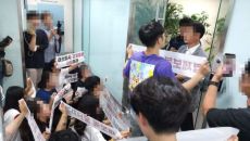 "일본 강제징용 사과하라" 대학생들, 미쓰비시 난입 기습시위